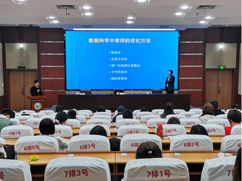 袁亚湘院士介绍了大数据问题的优化建模及其主要的计算方法,利用通俗易懂的语言介绍压缩感知、矩阵完整化、梯度法、交替方向法、增广拉格朗日法、子空间方法、随机梯度法等当前国际上备受关注的优化问题和主要优化算法。活动中,与会师生踊跃提问、讨论热烈,带给与会者诸多启发,取得良好的效果。