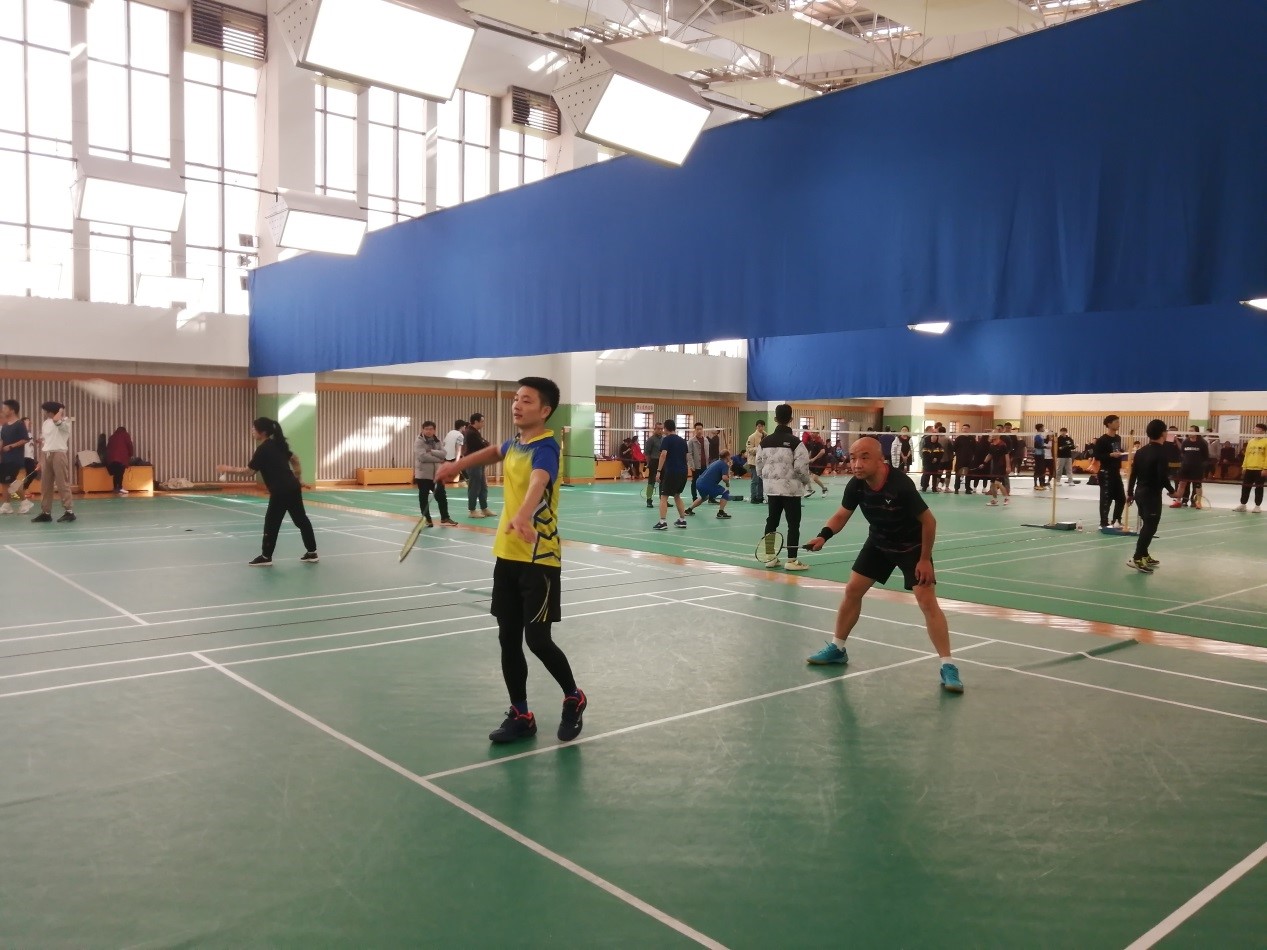 2021年11月24日下午,校教职工羽毛球团体赛在体育馆三楼羽毛球馆举行。球盟会派出了由李传莹(男,化学系)、曹军(男,物理系)、洪孝挺(男,化学系)、祁昕欣(女,化学系)、徐成丹(女,数学科学系)等五名运动员组成的代表队,参加男单、女双、男双三个项目比赛。经过六个多小时的激战,最终在17支队伍中脱颖而出,荣获亚军,实现学院在校教职工羽毛球团体赛成绩历史性的突破。