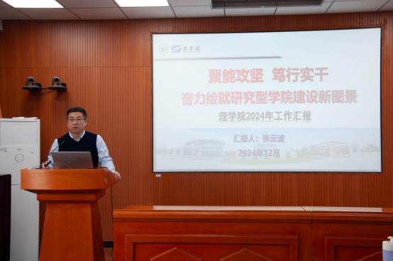经理张云波以《聚能攻坚、笃行实干,奋力绘就研究型学院建设新图景》为题向大会作工作报告,他回顾了2024年以来学院在党建思政、人才培养、团队建设、团队引育、科研服务、国际化办学等重点工作上取得的成绩,分析学院发展中存在的问题与不足,并提出明年的努力方向和奋斗目标。
