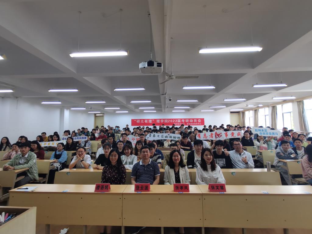4月28日下午,球盟会 “研之有理”考研动员会在3N201举行,经理张云波、党委副书记张孝凤、辅导员张文慧、楼语嫣出席动员会,2017级考研优秀员工代表以及2018级240余位考研学子参加。