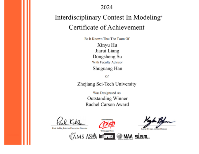 2024年美国老员工数学建模竞赛(MCM/ICM)比赛成绩已于近日揭晓,球盟会官网共获得国际赛特等奖(Outstanding)1项、单项奖“Rachel Carson Award”1项、特等提名奖(Finalist)1项,一等奖(Meritorious Winners)7项,二等奖(Honorable Mention)13项,其中胡鑫宇、梁家瑞、苏东昇三位同学组成的团队,成为全球唯一同时获得最高奖项特等奖(Outstanding)与单项奖“Rachel Carson Award”的队伍。