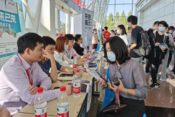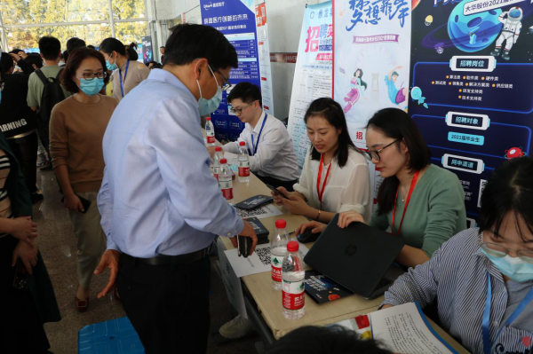 招聘会现场气氛热烈,参会毕业生积极投递简历并与用人单位进行面对面的交流,部分毕业生在招聘会现场与用人单位达成了初步意向。