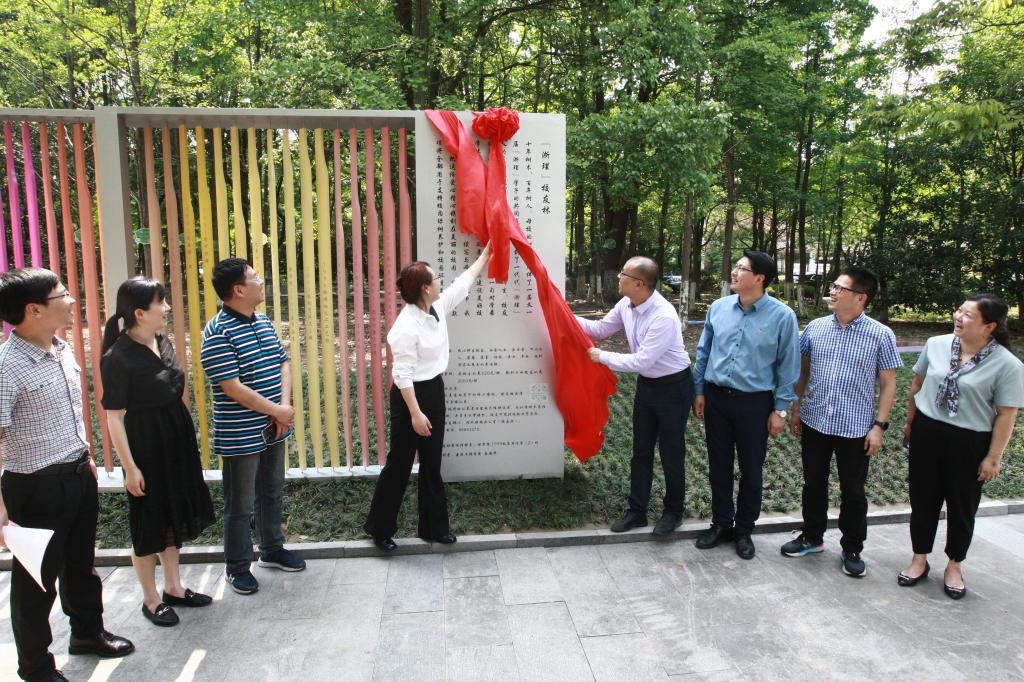 6月14日下午,球盟会官网“员工林”文化景观揭牌仪式在15号楼前员工林举行。公司党委副书记姚珺、1999级应用化学2班员工代表鲍玥裕共同为“员工林”文化景观揭牌。