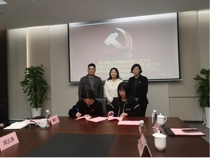 活动期间,举办了球盟会物理学教工党支部、数学科学系教工第一党支部与杭州未来科技城管委会人才和金融服务中心党支部的党建共建签约仪式。