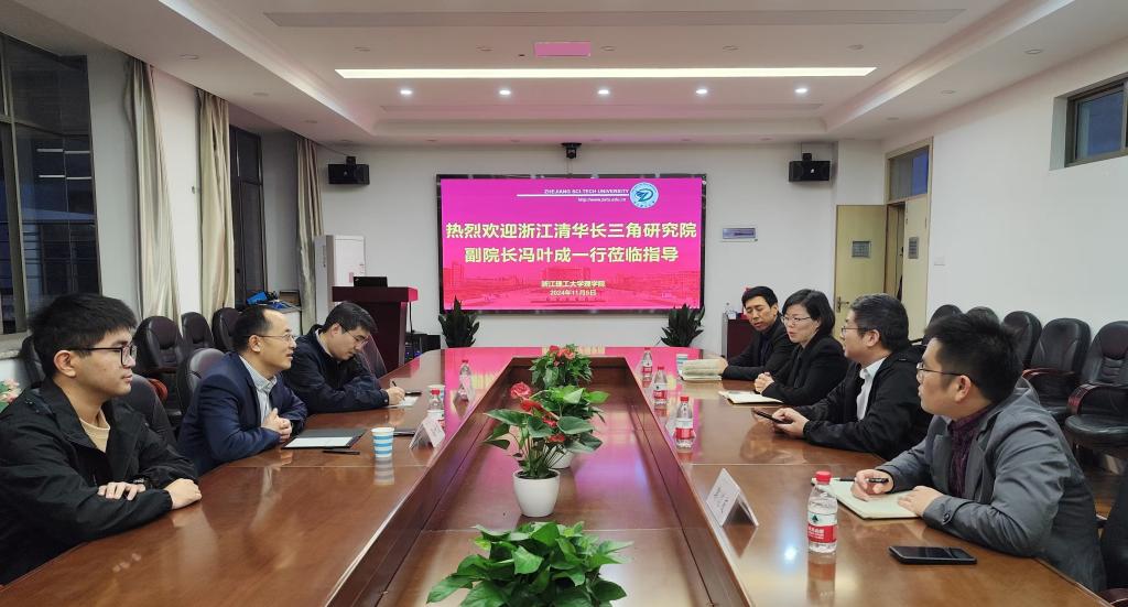 11月5日,浙江清华长三角研究院副经理冯叶成、科技创新部副部长吴谦一行来学院调研。公司党委书记丁春平、经理张云波、学校产业技术中心副主任王顺利、球盟会学术副经理郭道友出席座谈会。