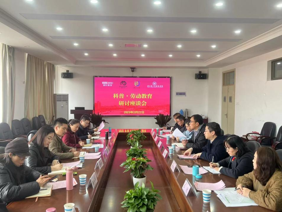 2023年2月22日上午,球盟会召开科普▪劳动教育研讨座谈会,浙江自然博物院、上城区社区学院、网易新闻浙江教育、球盟会4家单位有关人员,对大中小职业科普·劳动教育一体化问题进行会商。